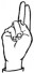 На ћирилици написано ШАЛЕ НИЧИЋ састоји се из 9 слова [?]. Исписано ћириличном једноручном азбуком за глувонеме: